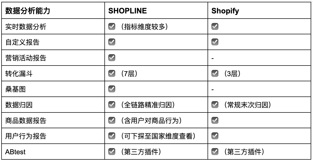 下面我们将在营销与数据层面将 SHOPLINE 与Shopify 进行对比:[6] [7]