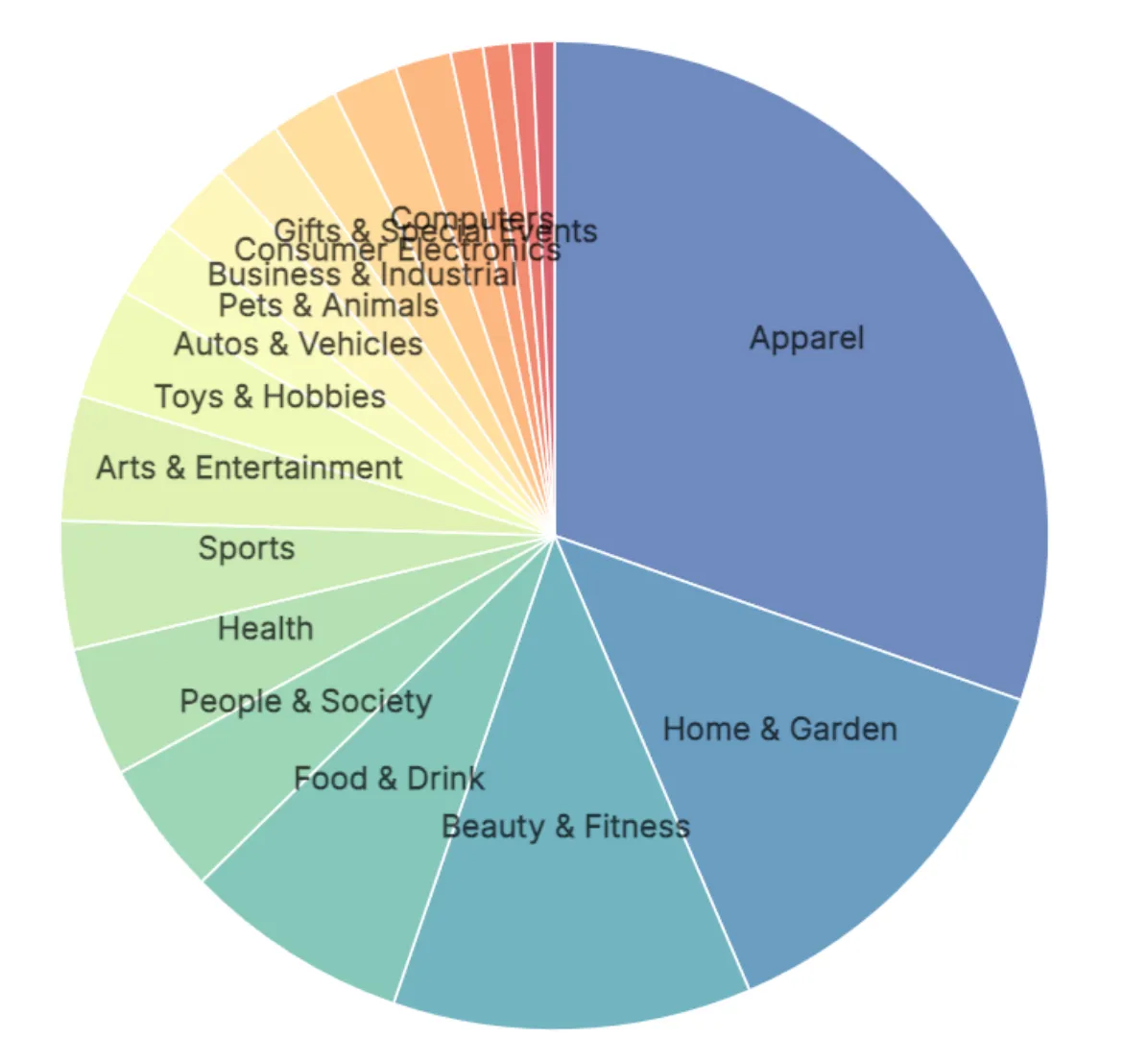 从storeleads的数据来看,SHOPLINE 和 Shopify 的商家主要都集中在服装饰品、家居园艺、食物饮品、美妆护肤这几个品类之中。
