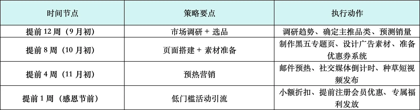 黑五的成功不在当天,而在于提前 2–3 个月的系统化准备。