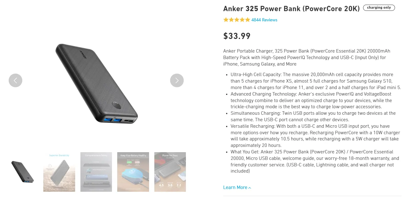 作为国内营收规模最大的出海消费电子品牌企业之一,anker显然深谙此道,他的产品营销文案中都会使用详细的数据介绍来支撑产品,以获取消费者的青睐。