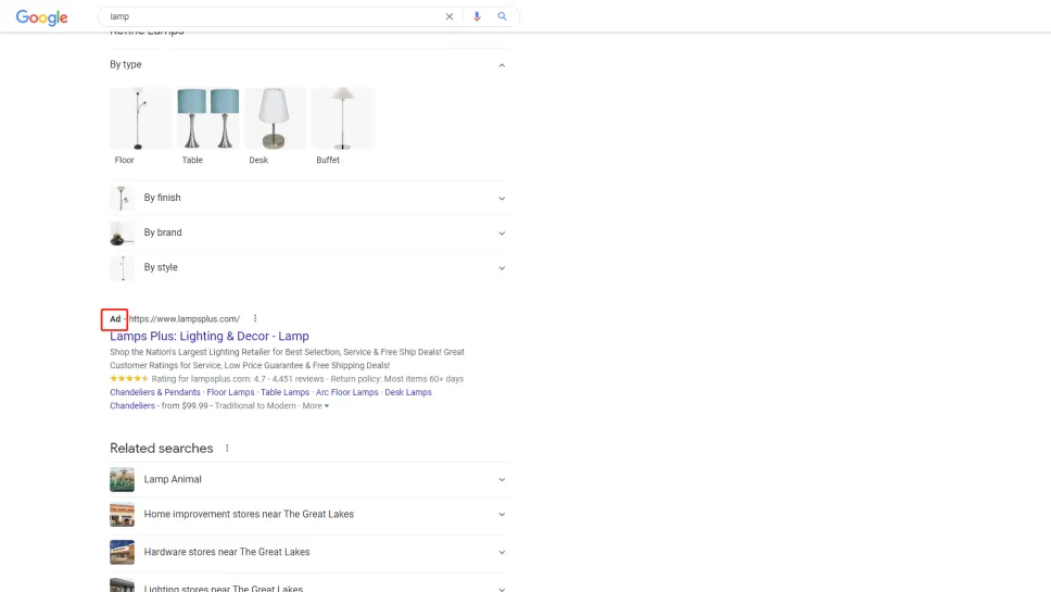 谷歌广告通常用粗体字标记 "Ad "或 "Ads"指标。