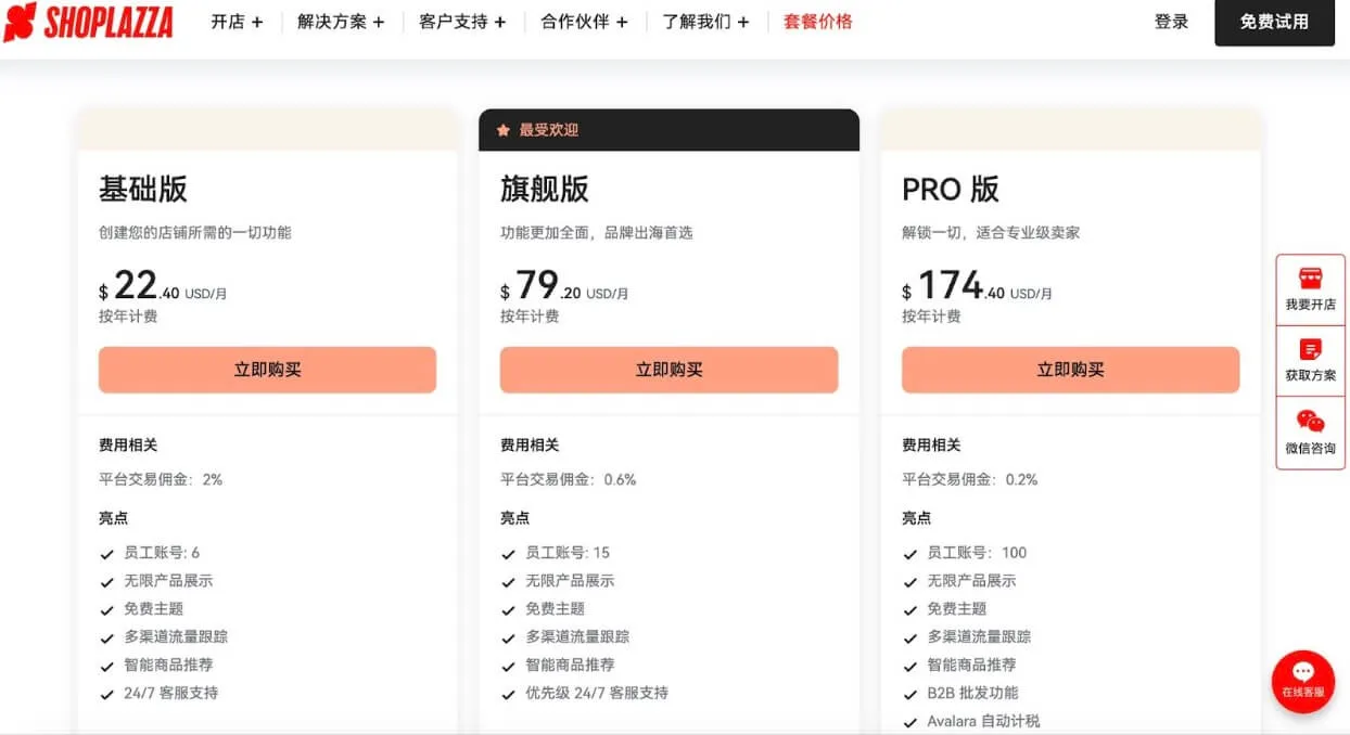 4.旗舰版($2999/年 + 0.2%抽佣,免佣额度$2999)