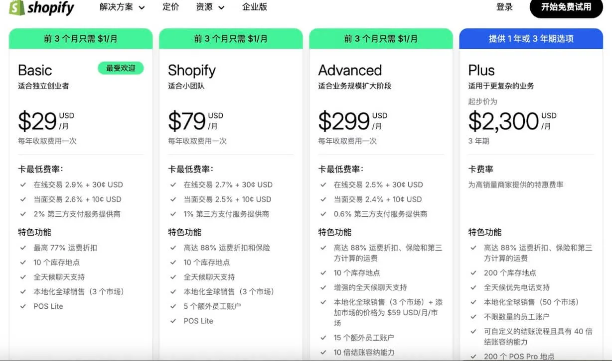 若使用非Shopify Payments网关,Basic版额外收取2%手续费(Advanced版0.6%)。