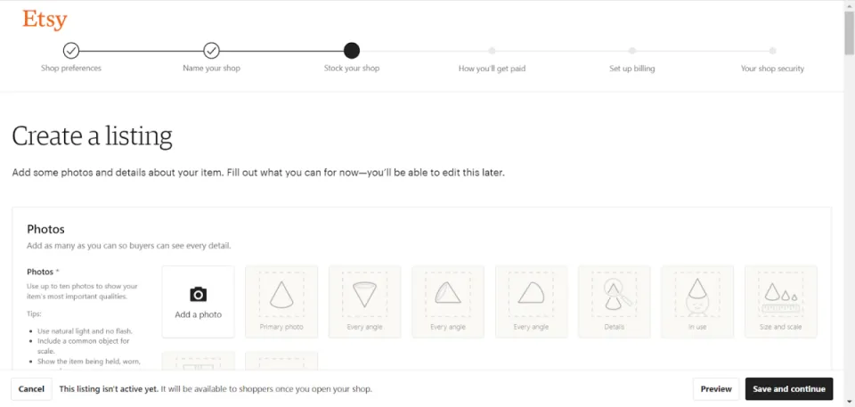 Etsy的上架费用也比较低,每个商品只需支付0.2美元,每件商品最多可上传10张照片,且可持续4个月。
