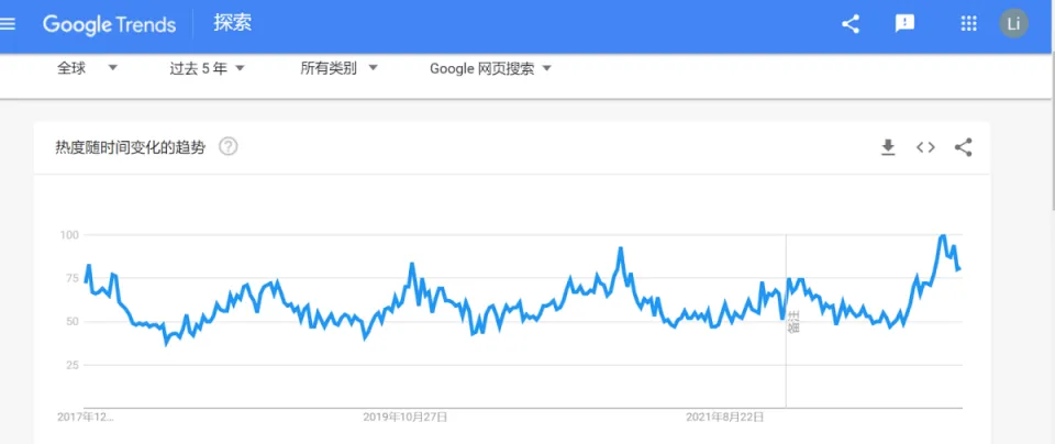 Google Trend提供了某个关键词在一定时间范围内的受欢迎程度和搜索趋势。
