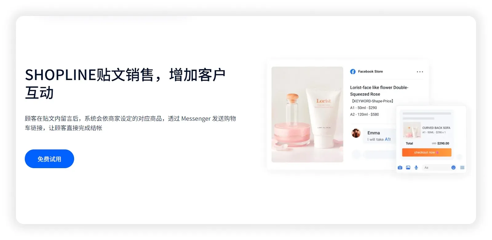 SHOPLINE直播已连接Facebook、Instagram,客户留言命中关键词触发下单链接,实时完成转化,订阅通知自动向客户推送消息。