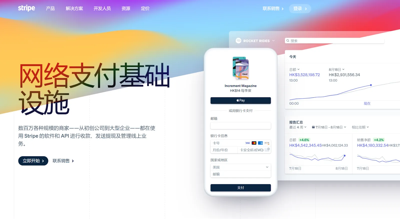 Stripe支持多种支付方式,包括信用卡、借记卡、移动支付选项(如Apple Pay和Google Pay)等。它还支持跨境支付多种货币和国际支付,满足用户跨境支付的需求。