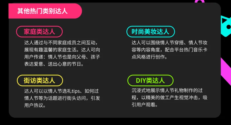 此外,家庭类、时尚美妆类、街坊类、DIY类的红人也备受欢迎。