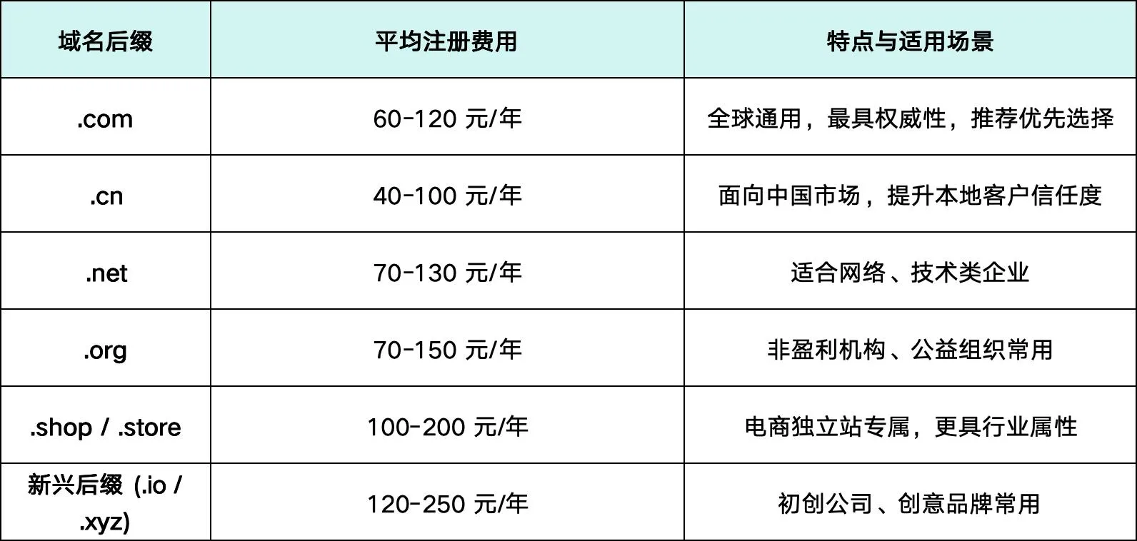 总体而言,.com 域名价格相对适中、兼具权威性与普遍性,因此绝大多数独立站都首选 .com。