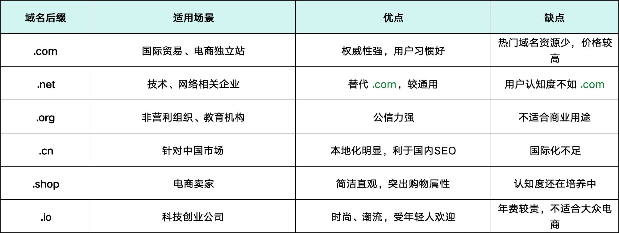 如果 .com 域名已经被注册,可以考虑使用 .shop 或 .store,对电商类独立站同样很有吸引力。