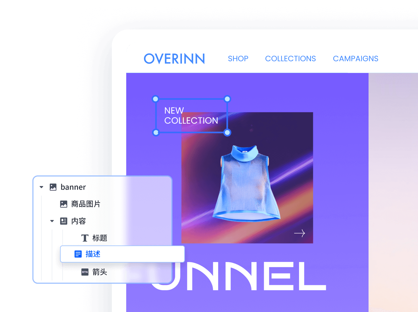 SHOPLINE 高阶组件库提供丰富的预设效果,支持您像“拼图”一样自由组合内容,为独立站商品打造最佳的视觉呈现效果