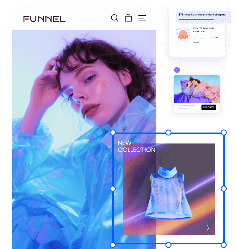 支持无缝、精准地将 Block (模块) 拖放定位到商店中的任意位置,可灵活调整的布局让您释放无限创意